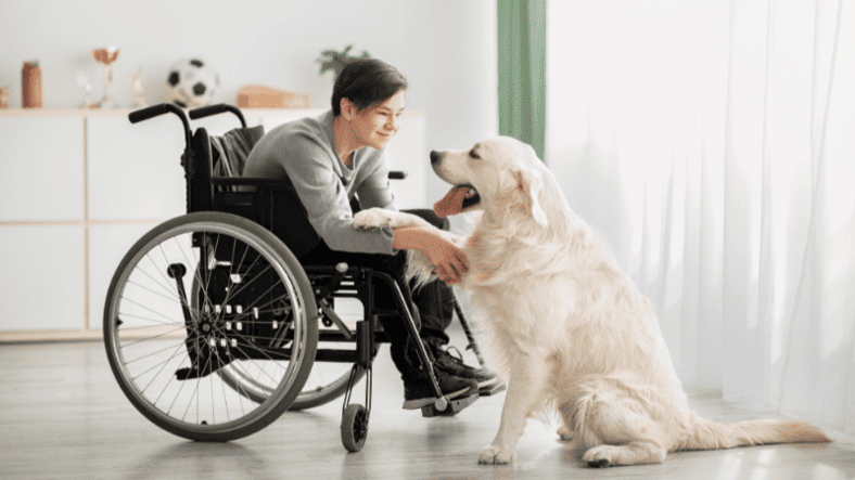 Calm around medical equipment, wheelchairs, and unpredictable movement